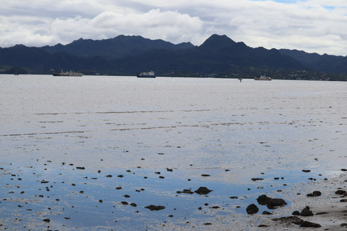 Even in Suva - a kind of gritty city in a country more accustomed to rural villages, small towns, and tourist beaches - the natural beauty is evident. We are here in their winter (May-June) where they often complain it is cold on 77F days. It rains some almost every day, resulting in lush greenery, colorful flowers, and giant mangrove trees. Wildlife consists mostly of very large fruit bats, herons, Indian mynah birds that accompanied indentured laborers by ship, and bugs as tiny as the bats are large. We've also seen iguanas and frogs. We are surrounded by clouds, mountains, and ocean.